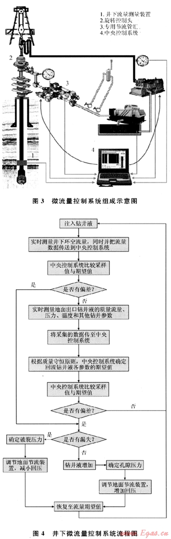 隨著油氣勘探開發(fā)難度的加大,人們相繼發(fā)展了雙梯度鉆井、泥漿帽鉆井、井底恒壓鉆井等各種控壓鉆井(MPD)方式來滿足復雜地區(qū)鉆井的需要[1~3]。目前控壓鉆井按照控制對象,可分為環(huán)空壓力剖面控制和環(huán)空流量控制兩類,上述幾種MPD都屬于環(huán)空壓力剖面控制,而微流量控制方法則屬于環(huán)空流量控制。相較于監(jiān)測環(huán)空壓力,對環(huán)空流量的監(jiān)測能極大地提高溢流、井漏等井下復雜情況監(jiān)測的準確性和靈敏性。而對于環(huán)空流量監(jiān)測本身(尤其針對氣井),在地面監(jiān)測和在井下監(jiān)測也存在著很大的差別,直接影響到一口井后續(xù)井控的能力,甚至關系到鉆井作業(yè)的成敗。本文介紹的井下微流量控制方法能夠隨鉆監(jiān)測井下環(huán)空流量的變化,進而調節(jié)井口回壓閥的開度,通過改變井底壓力來控制溢流或井漏的大小,從而實現(xiàn)對環(huán)空流量的控制。