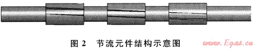 基于井下安全的考慮,這里選擇被廣泛應用于鉆井現(xiàn)場的井下穩(wěn)定器作為節(jié)流元件的參考結構。在產生需要壓差的前提下,為了保證鉆井液(包括巖屑)能夠沿流道順利通過節(jié)流元件而不發(fā)生阻塞,這里使用多級節(jié)流的方法來達到預期的節(jié)流效果,如圖2所示。
