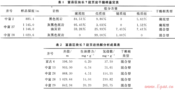 可以看出:長7段頁巖有機(jī)質(zhì)類型多為腐泥型、混合型。