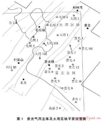 普光氣田位于四川省宣漢縣境內(nèi),區(qū)域構(gòu)造位于川東斷褶帶東北段,緊鄰大巴山褶皺帶的南緣,主要目的層段為二疊系上統(tǒng)的長興組和三疊系下統(tǒng)飛仙關(guān)組,均為海相碳酸鹽巖地層。普光氣田主要包括普光主體和大灣區(qū)塊等(圖1、2),已累計探明天然氣地質(zhì)儲量4121×108m3。目前,普光主體產(chǎn)能建設(shè)工程已基本完成;大灣區(qū)塊產(chǎn)能建設(shè)工程正抓緊實施。