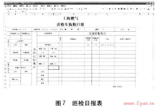 根據(jù)巡檢結(jié)果,系統(tǒng)自動(dòng)進(jìn)行統(tǒng)計(jì)分析,生成各類報(bào)表,例如:巡檢日?qǐng)?bào)表、巡檢周報(bào)表、巡檢月報(bào)表、不能出車記錄表等。圖7為巡檢日?qǐng)?bào)表。