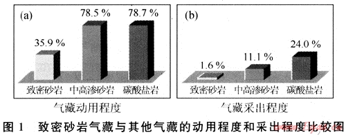 雖然在開發(fā)技術(shù)上取得了成效,但在氣藏的動用程度和采出程度方面,致密砂巖氣藏遠(yuǎn)遠(yuǎn)低于中高滲透砂巖氣藏和碳酸鹽巖氣藏(見圖1),處于規(guī)模開發(fā)的早期階段。